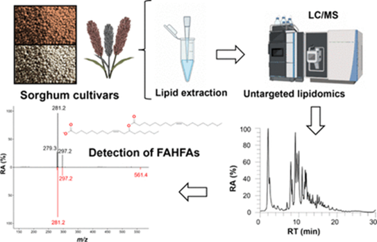 46. Nath, L. R., Siddabasave Gowda B. Gowda*, Roberts, T. H., Gowda, D., Khoddami, A., & Hui, S. P. (2024). Nontargeted Lipidomics of Sorghum Grain Reveals Novel Fatty Acid Esters of Hydroxy Fatty Acids and Cultivar Differences in Lipid Profiles. J Agric Food Chem. 2024 Sep 18;72(37):20690-20703. 10.1021/acs.jafc.4c05919. [Cover page]. Pressrelease: https://www.global.hokudai.ac.jp/news/8547/