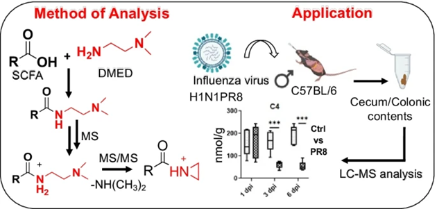 20. Gowda D, Li Y, Siddabasave Gowda B. Gowda ,Ohno M, Chiba H and Hui S-P. “Determination of short-chain fatty acids by N,N-dimethylethylenediamine derivatization combined with liquid chromatography/mass spectrometry and their implication in influenza virus infection”. Anal Bioanal Chem, 2022. https://doi.org/10.1007/s00216-022-04217-x.