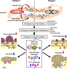 18. Miki Y, Taketomi Y, Kidoguchi Y, Yamamoto K, Muramatsu K, Nishito Y, Park J, Hosomi K, Mizuguchi K, Kunisawa J, Soga T, Boilard E, Siddabasave Gowda B. Gowda, Ikeda K, Arita M, Murakami M. “Group IIA secreted phospholipase A2 controls skin carcinogenesis and psoriasis by shaping the gut microbiota”. JCI Insight. 2022 25;7(2):e152611. doi: 10.1172/jci.insight.152611. PMID: 350760247.